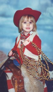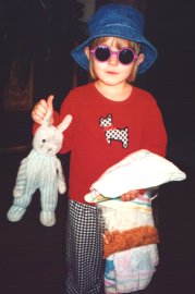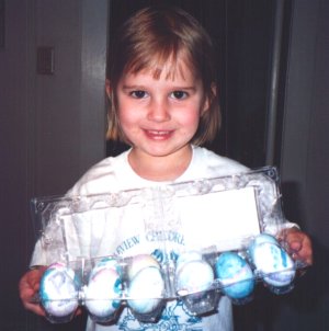 proud of those eggs - Easter 1998 dress-up 2/98 in the corn, Nat Western 1998