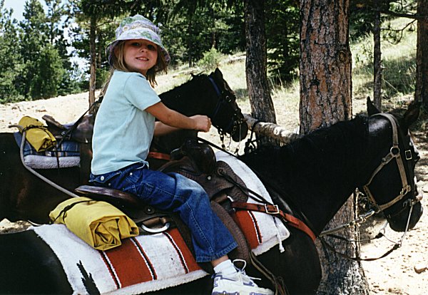 Sarah on Gus, Estes Park, June 24, 2000