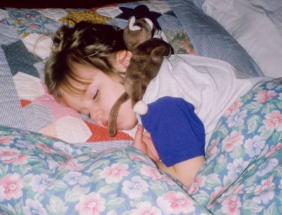 asleep with the beanie cat, January 1998